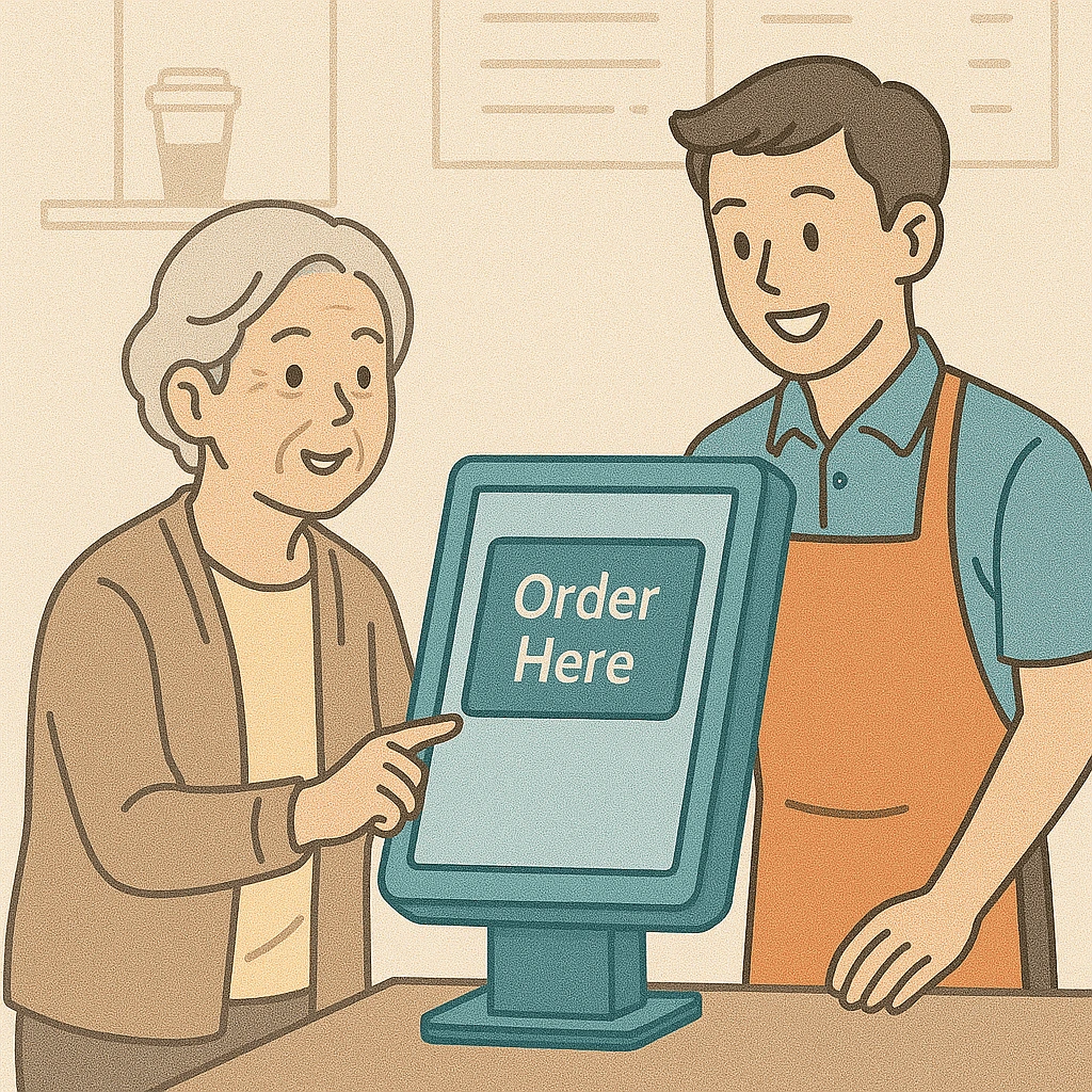 키오스크(Kiosk)는 사람이 직접 주문을 받는 대신 화면을 터치해 상품을 선택하고 결제하는 무인 단말기를 의미합니다. 시니어 세대에게는 낯설 수 있지만, 화면 구성이 단순해 한 번만 배우면 쉽게 사용할 수 있습니다.