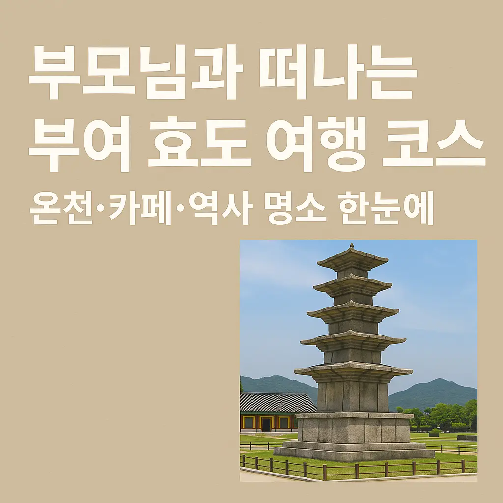 부모님과 떠나는 부여 효도 여행 코스|온천·카페·역사 명소 한눈에목차부여 효도 여행을 계획해야 하는 이유편안하게 즐기는 부여 1박 2일 추천 코스부여에서 꼭 들러야 할 역사 명소 3곳부모님과 함께하기 좋은 온천 & 카페시니어 여행자를 위한 부여 여행 팁 부여 효도 여행을 계획해야 하는 이유부여는 백제의 고도로 역사·자연·휴식을 한 번에 담아낼 수 있어 부모님과 떠나는 효도 여행지로 적합합니다. 가족 동반 방문이 많은 지역 특성상 숙박, 교통, 여행자보험 등 관련 서비스 정보가 풍부해 준비가 수월합니다. 관련 상품과 서비스는 신뢰할 수 있는 예약 플랫폼에서 날짜·가격·리뷰를 비교해 보면 더욱 합리적으로 선택할 수 있습니다.수도권·충청권에서 접근하기 쉬워 당일·1박2일 모두 가능한 점도 장점입니다. 이동 동..